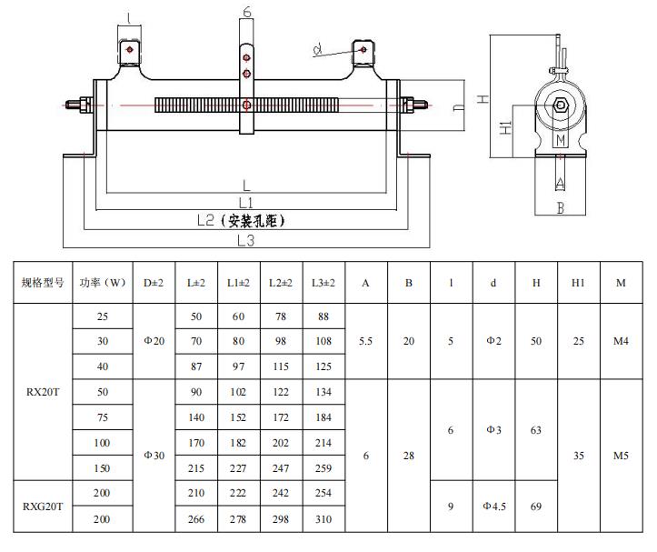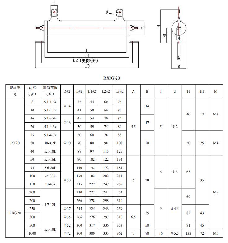 RX(G)20(T)功率型被釉線(xiàn)繞電阻器
