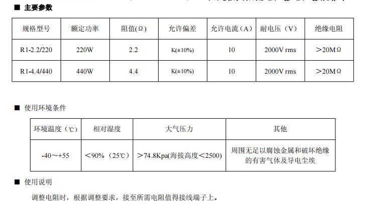 R1-2.2 220 R1-4. 4 440固定抽頭限流電阻器